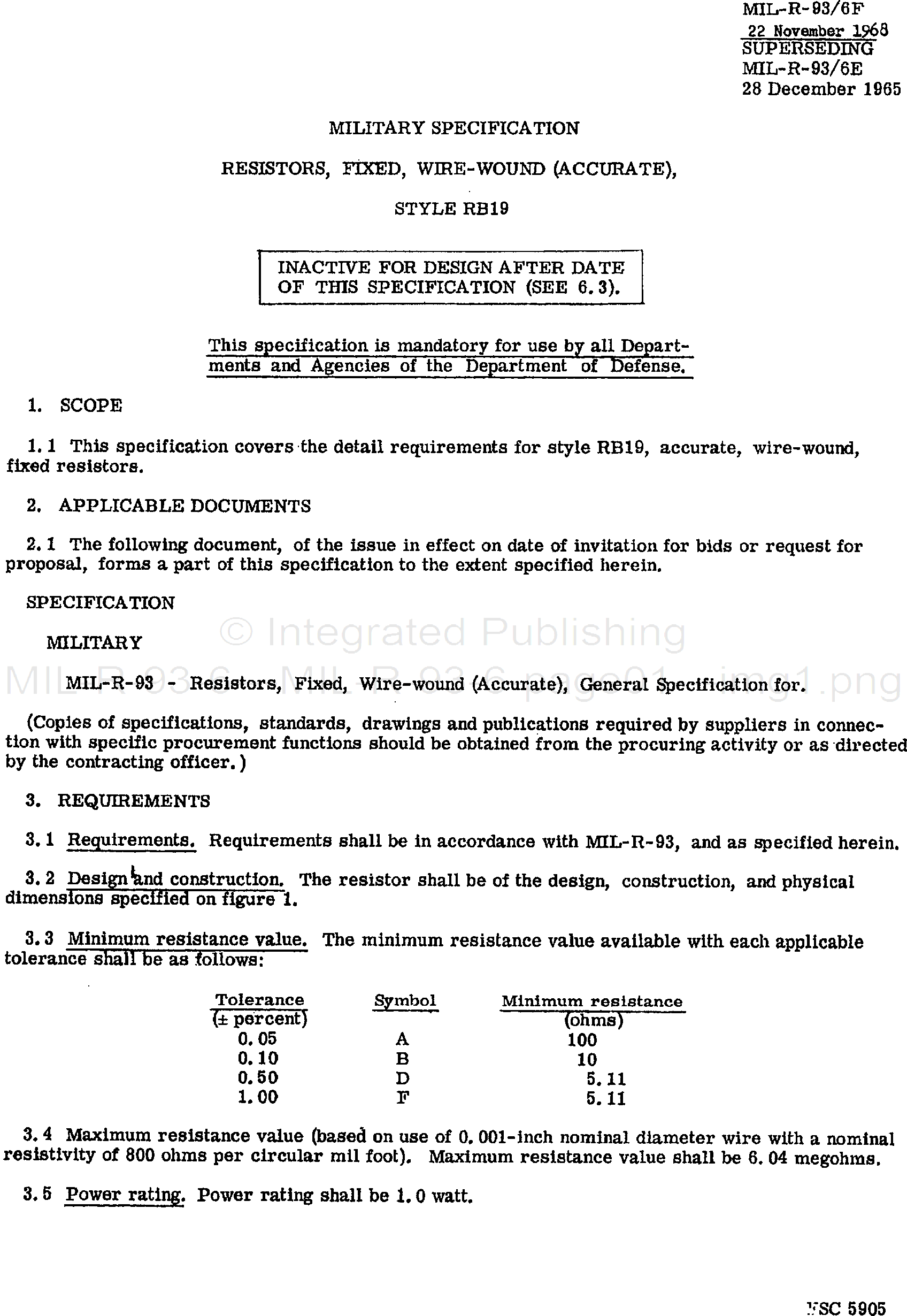 MIL-R-93-6 Resistors, Fixed, Wire-Wound Accurate, Style Rb19